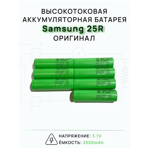 Аккумуляторная батарея Samsung высокотоковая - 7шт 25R, размерность 18650 2500 мАч 30А 3.7В