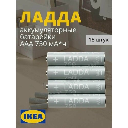 Аккумуляторная батарейка IKEA LADDA ладда HR03 AAA 1.2 В 750 мА ч , в упаковке: 16 шт.
