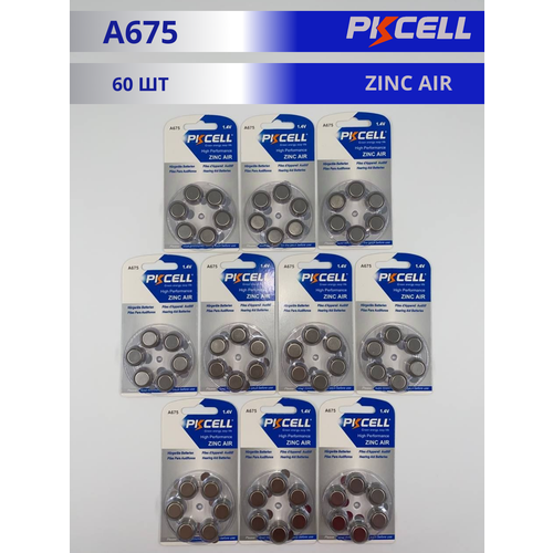 Батарейка PKCELL A675 для слуховых аппаратов (60 штук)