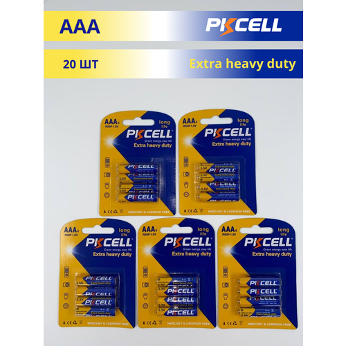 Батарейки PKCELL ААА мизинчиковые солевые (20 штук)