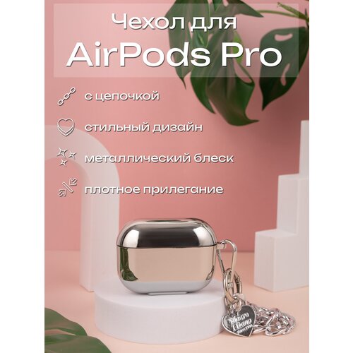 Серебристый чехол для AirPods Pro с цепочкой