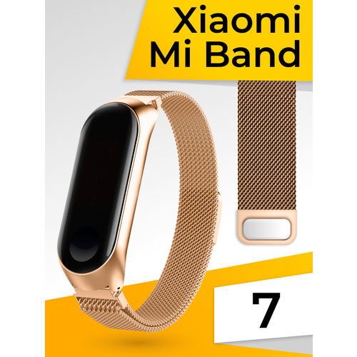 Металлический ремешок на фитнес-трекер Xiaomi Mi Band 7 / Стальной браслет миланская петля для умных смарт часов Сяоми Ми Бэнд 7 / Золото