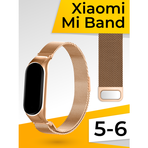 Металлический ремешок для фитнес браслета Xiaomi Mi Band 5 и 6 Миланская петля / Браслет для смарт часов на магнитной застежке / Золото