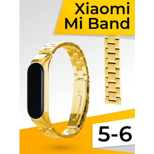 Металлический ремешок для фитнес-трекера Xiaomi Mi Band 5 и 6 / Стальной браслет миланская петля для умных смарт часов Сяоми Ми Бэнд 5 и 6 / Лимонное золото