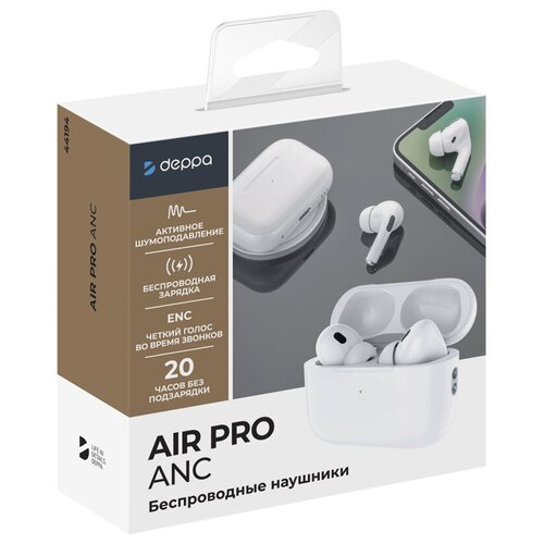 Беспроводные наушники с микрофоном Deppa Air Pro ANC, белые (44194)