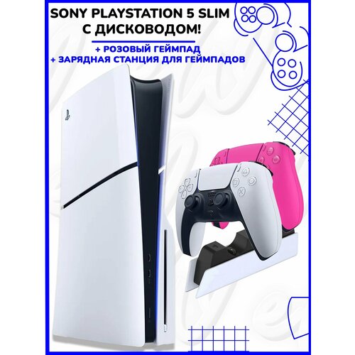 Игровая приставка Sony PlayStation 5 Slim с дисководом + 2й розовый геймпад и зарядная станция