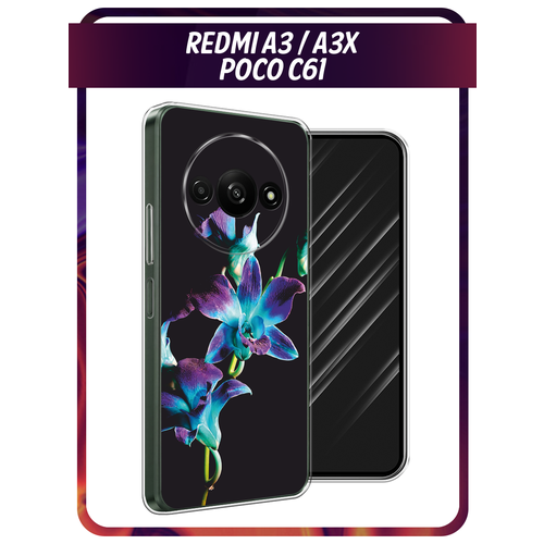 Чехол на Xiaomi Redmi A3/A3x/Poco C61 / Сяоми Редми А3/A3x/Поко С61 с принтом Синий цветок на черном