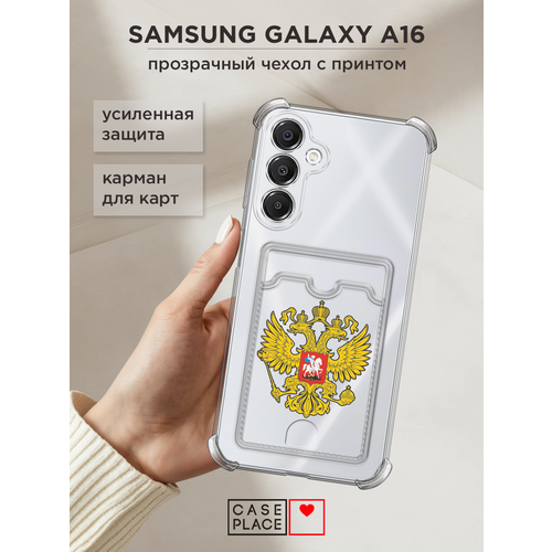 Чехол на Samsung Galaxy A16 (Самсунг Галакси А16) с картой и принтом Герб Россиии