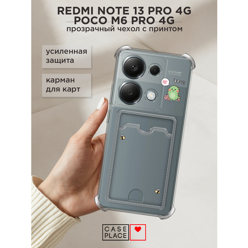 Чехол на Xiaomi Redmi Note 13 Pro 4G/POCO M6 Pro 4G (Сяоми Редми Нот 13 Про 4G/Поко М6 Про 4G) с картой и принтом Динозавр и пчёлки