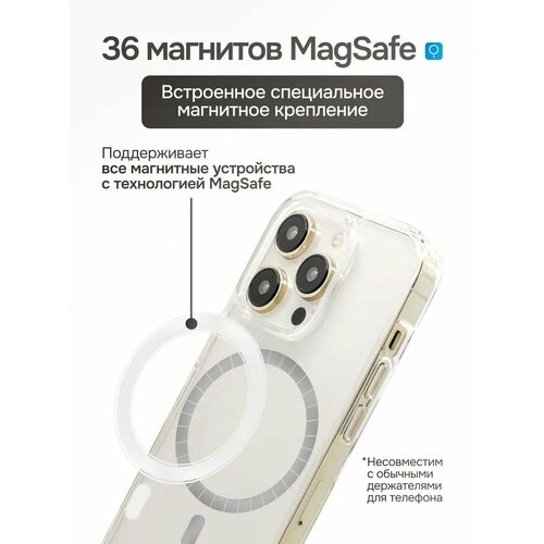 Чехол на Айфон 15 Про с поддержкой MagSafe / магсейф для iPhone 15 Pro, прозрачный, противоударный