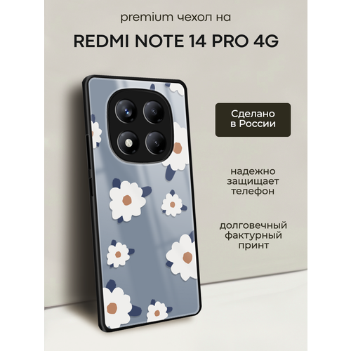 Чехол на Xiaomi Redmi Note 14 Pro 4G / Сяоми Редми Нот 14 Про 4G с объемным принтом "Ромашки на стекле"