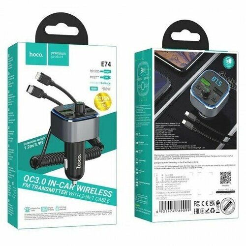 Автомобильное зарядное устройство Hoco Е74 с кабелем кабель Lightning/Type-C, 013062 Черный