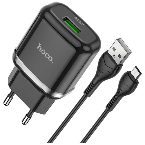 Сетевое зарядное устройство Hoco N3 Vigour + кабель micro-USB, 18 Вт, black