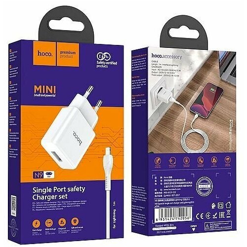 Сетевое ЗУ HOCO N9, 1хUSB-А, 2.1А + кабель (AM-8pin (Lightning), 1 м, (12/120)