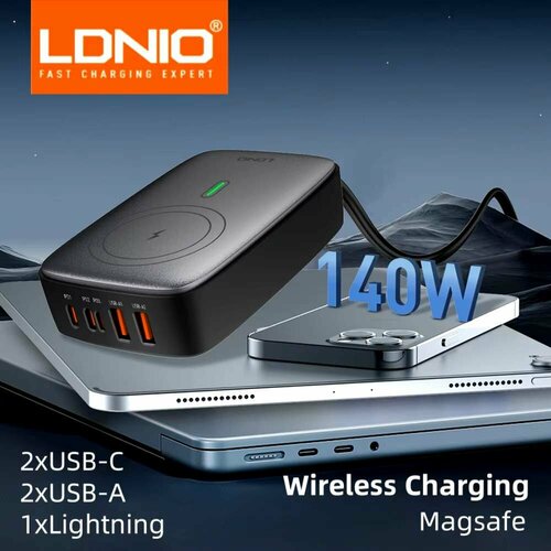 Устройство для быстрой зарядки LDNIO Q4010 GaN, 140W Тип C, с беспроводным зарядным устройством Magsafe