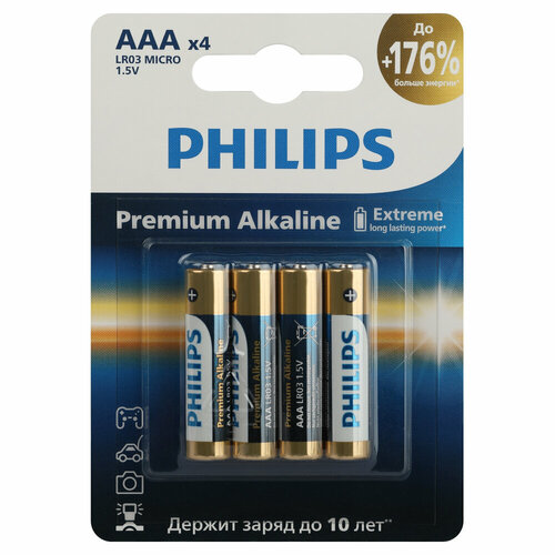 Батарейка Philips Premium (Б0062755) ААА мизинчиковая LR03 1,5 В (4 шт.)