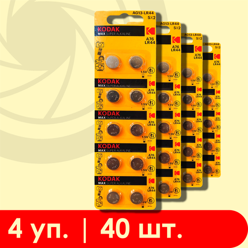Kodak LR44 (AG13/A76/357) Max Super Alkaline | 1,5 вольта Щелочная (алкалиновая) батарейка - 40шт.