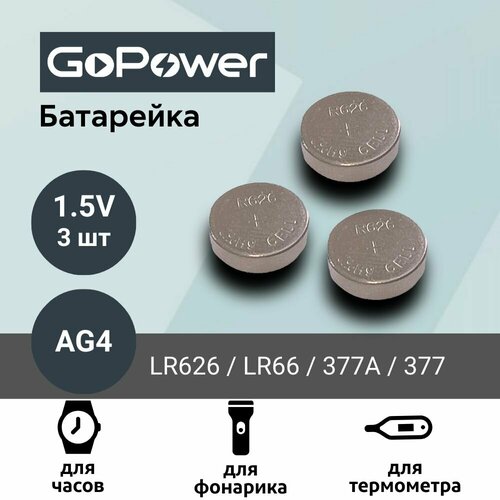 Батарейка GoPower AG4 (LR626, LR66, 377A, 177) Alkaline 1.55V (3 шт)