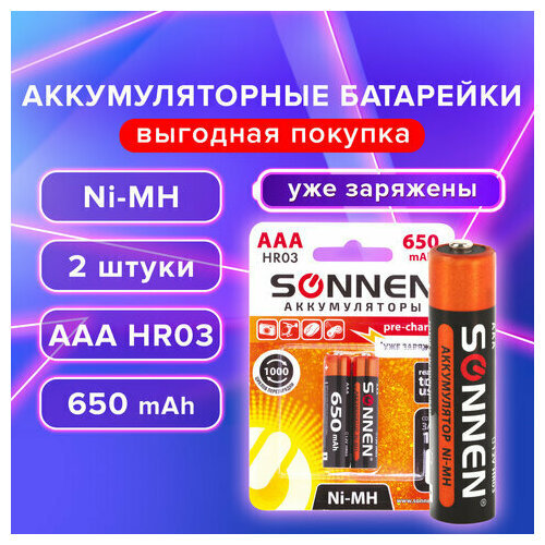 Батарейки аккумуляторные Ni-Mh мизинчиковые 2 шт, технология ni-mh
