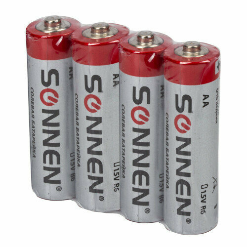 SONNEN Батарейки комплект 4 шт, sonnen, аа (r6, 15а), солевые, пальчиковые, в пленке, 451097, 18 шт.