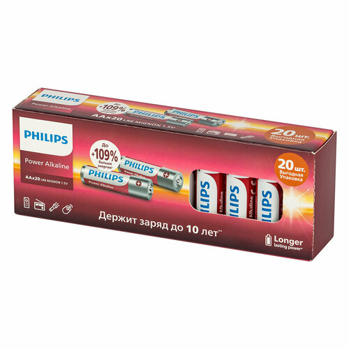 Батарейки Philips пальчиковые АА алкалиновые 1,5v 20 шт. LR6-20BL Power
