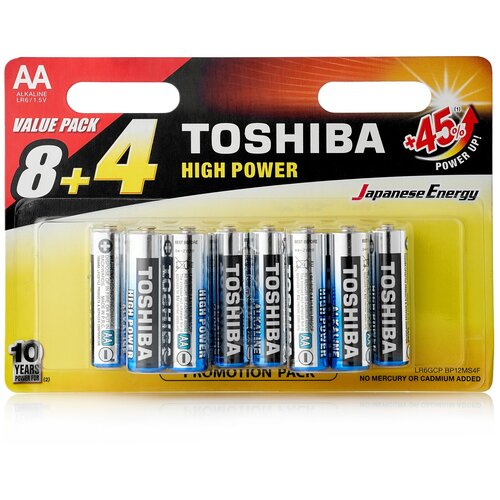 Батарейки Toshiba High Power Alkaline LR20 GCP SP-2CN, (D), спайка 2 шт.