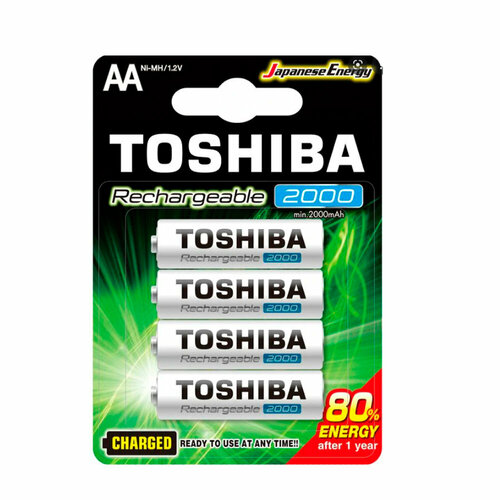 Аккумулятор AA Toshiba, R06-4BL, 2000mAh, зарядное устройство, (2/10/400), 2шт