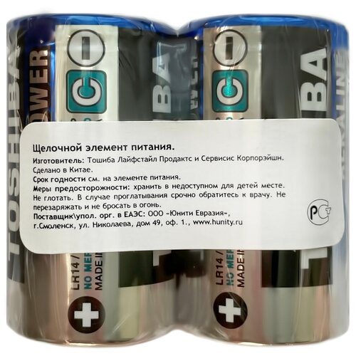 Батарейки Toshiba High Power Alkaline LR14 GCP SP-2CN, (C), спайка 2 шт.