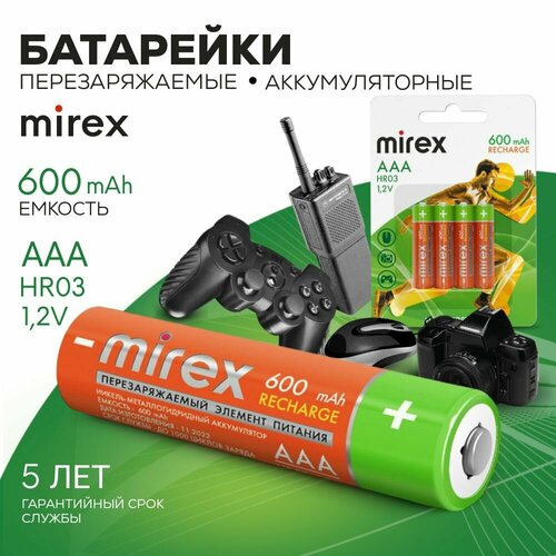 Аккумулятор Mirex, Ni-Mh, AAA, HR03-4BL, 1.2В, 1100 мАч, блистер, 4 шт. 9633045