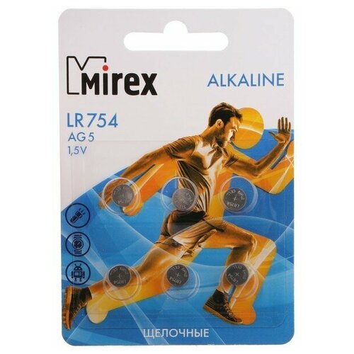Батарейка алкалиновая Mirex, LR754, AG5, 1.5В, блистер, 6 шт