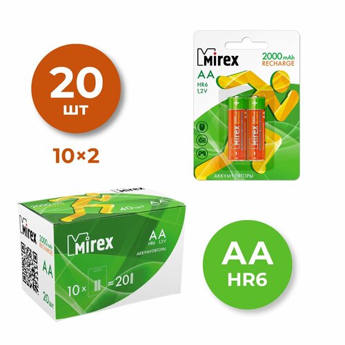 Аккумуляторы Mirex HR6 / AА 2000 mAh / аккумуляторные батарейки (пальчиковые) 20 шт, Ni-Mh, 10 блистеров