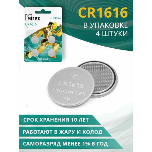 Батарейки литиевые (таблетка) Mirex CR1616 3V 4 шт