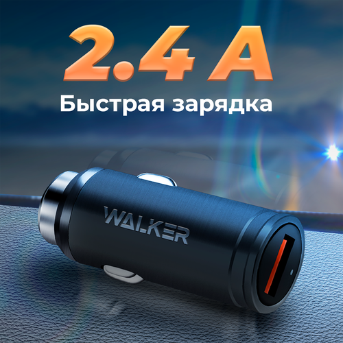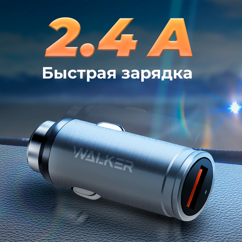 Автомобильная зарядка для телефона, удлиненный корпус, 2 USB, 2.4А, WALKER, WCR-22, зарядное устройство в прикуриватель, автозарядка в машину