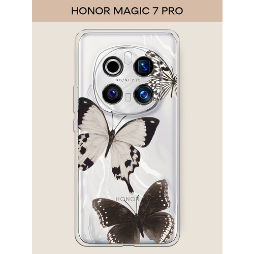 Силиконовый чехол "Три монохромные бабочки" на Honor Magic 7 Pro / Хонор Мэджик 7 Про, прозрачный