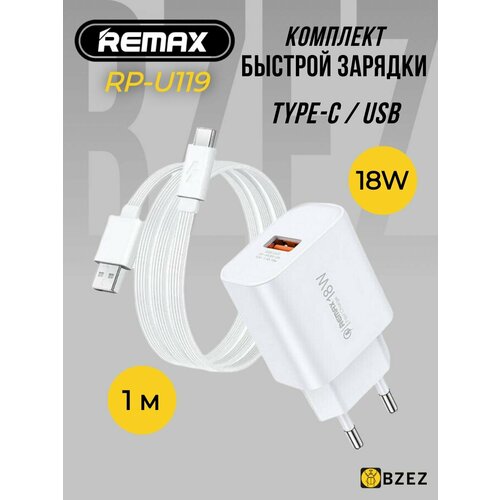 Быстрая зарядка type-c 18w / комплект адаптер + кабель Remax