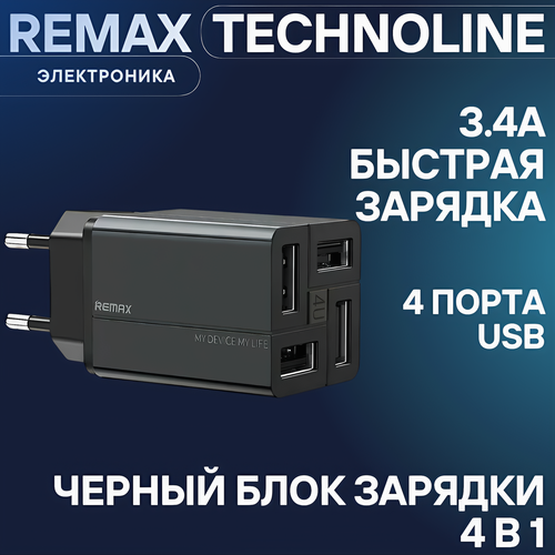 Сетевое зарядное устройство Remax RP-U43 Черный с 4 USB-портами