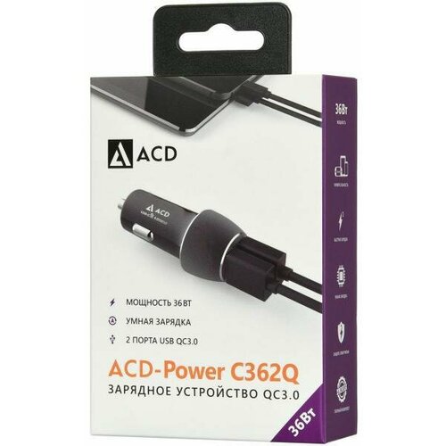 АЗУ (ACD-С362Q-V1B) 36Вт, Автомобильное ЗУ, 2xUSB QC, 3.6/12В/3А RTL
