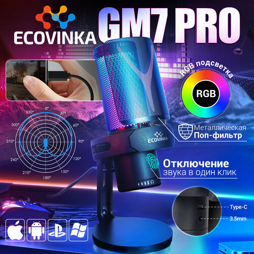 Микрофон для для компьютера игровой ECOVINKA GM7 PRO, RGB-подсветкой, Совместим с монитором ECONINKA FT27A Pro