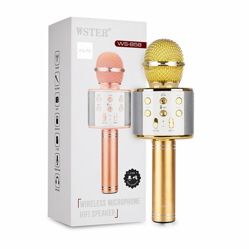 Оригинальный караоке-микрофон WSTER WS-858 с колонкой, Bluetooth, портативный, 5Вт, 1800mAh, золото