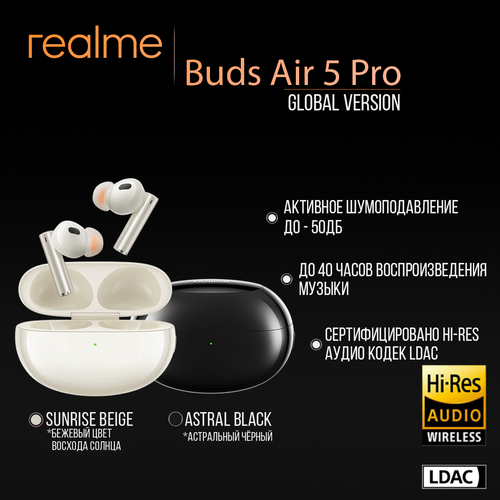 Realme Buds Air 5 Pro Глобальная версия Цвет - Бежевый. Sunrise Beige. RMA 2120
