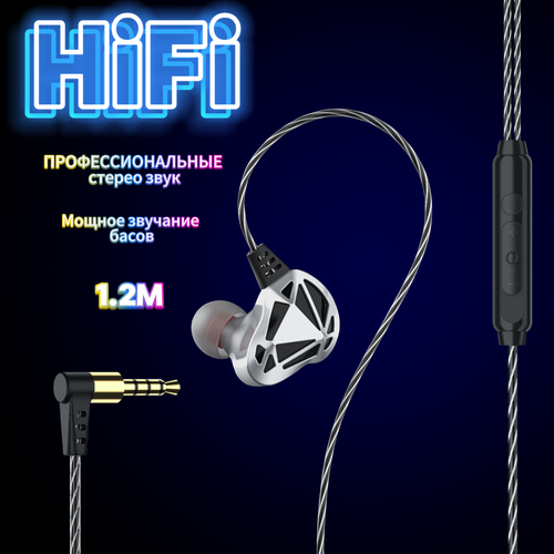 Наушники с микрофоном / разъём jack 3.5 мм / F-5 6D Earphone / гарнитура / проводные наушники /серебристый цвет