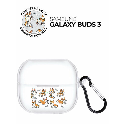 Чехол на Samsung Galaxy Buds 3 с принтом "Паттерн из корги" прозрачный