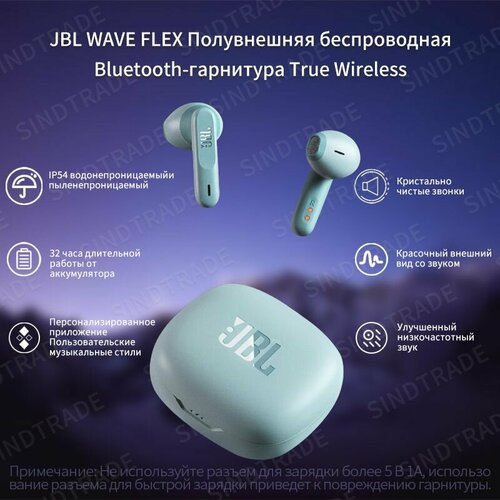 Блютуз наушники беспроводные JBL Wave Flex, Весит всего 3,8 грамма, конструкция наполовину в ухе, удобна в носке, время автономной работы составляет 32 часа, шумоподавление во время звонков