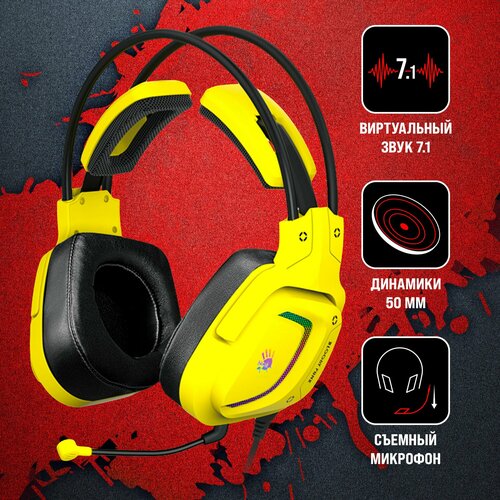 Игровые наушники с микрофоном A4Tech Bloody G575 PUNK, Подсветка RGB, мониторные 7.1, 2м. USB, желтый