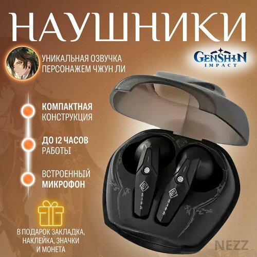 Наушники беспроводные со встроенным микрофоном Bluetooth Genshin Impact Геншин Импакт Чжун Ли с сенсорным управлением, блютуз гарнитура для телефона и компьютера, подарок детям