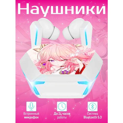 Наушники беспроводные со встроенным микрофоном Bluetooth Genshin Impact Геншин Импакт Яэ Мико с сенсорным управлением, блютуз гарнитура для телефона и компьютера, подарок детям