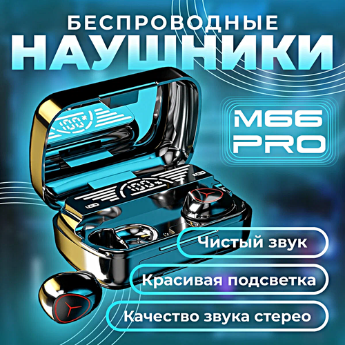 Беспроводные наушники TWS M66 PRO, Cенсорные Bluetooth наушники для смартфона, Подсветка, Зарядный кейс, Черный