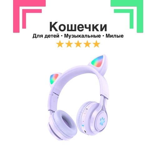 Наушники кошечки для девочек и мальчиков Cat ear 39, беспроводные с ушами котенка с защитой детского слуха, фиолетовые