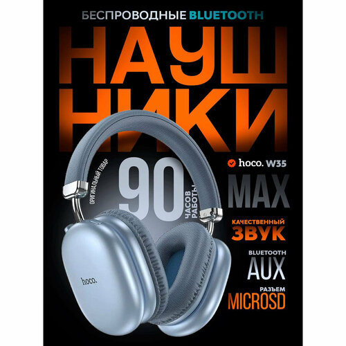 Беспроводные полноразмерные наушники с микрофоном Hoco W35 Max Bluetooth 5.3, цвет Голубой