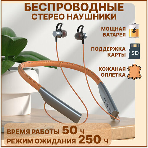 Наушники беспроводные с микрофоном спортивные блютуз гарнитура для бега на шею (BT)